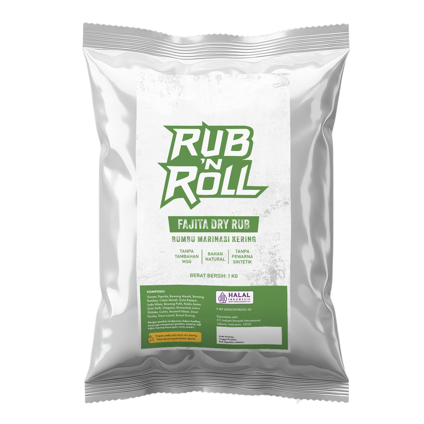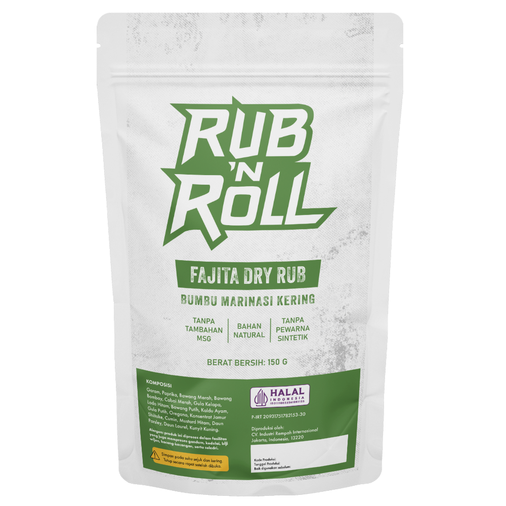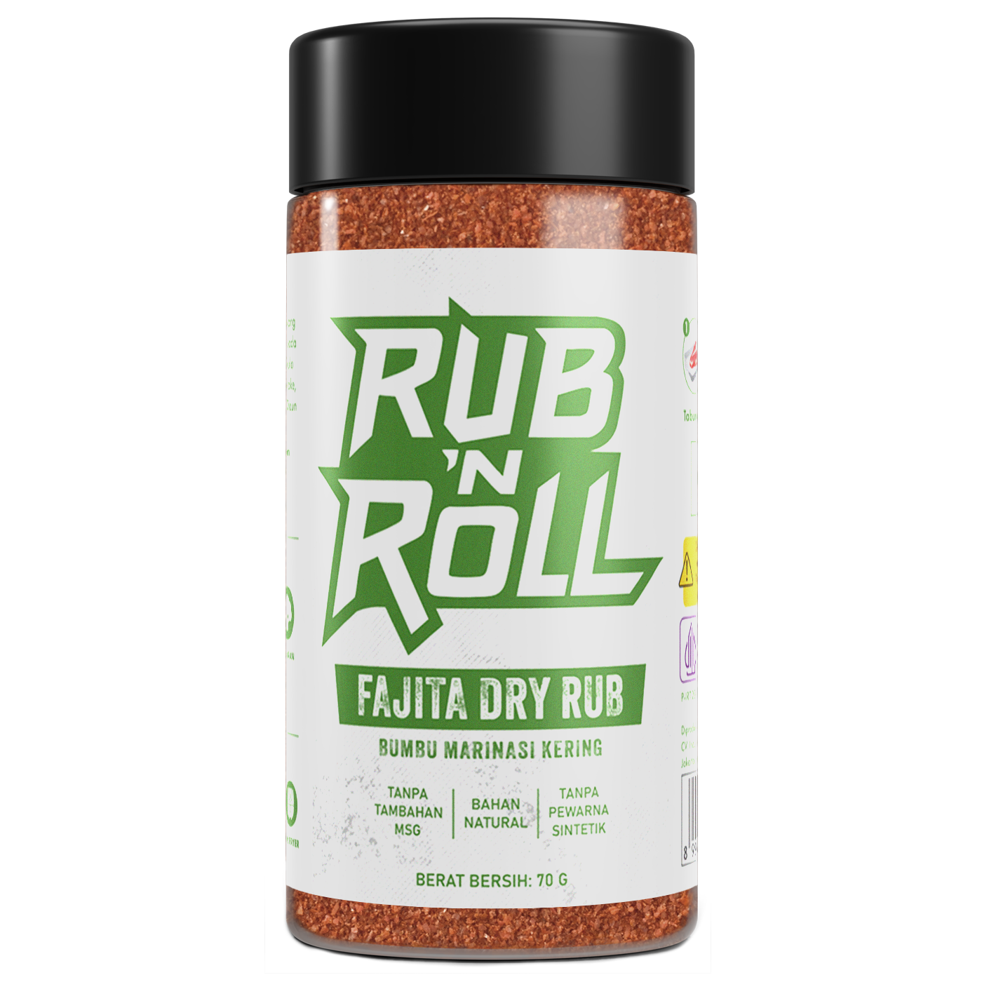 Bumbu Fajita Untuk Marinasi Rub N Roll adalah Dry Rub Premium yang terbuat dari bahan natural, tanpa tambahan MSG, pengawet, dan pewarna buatan. Upgrade rasa masakanmu jadi lebih nendang dan smoky hanya dengan satu bumbu.