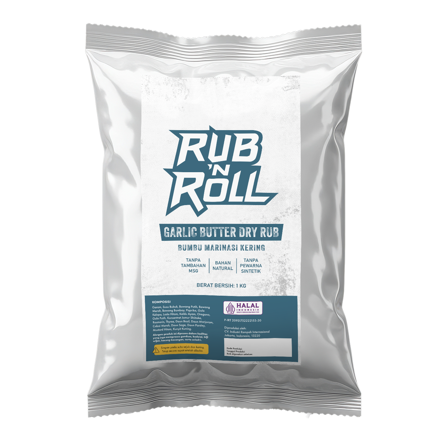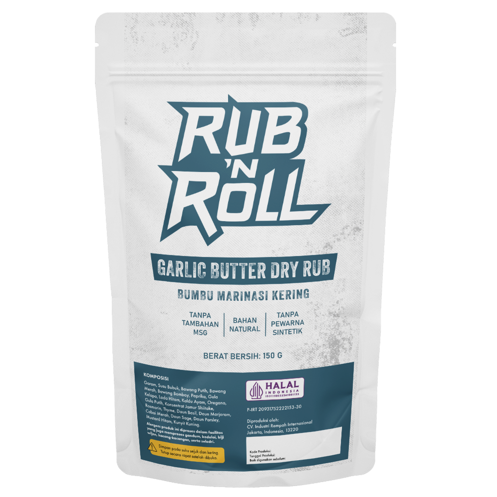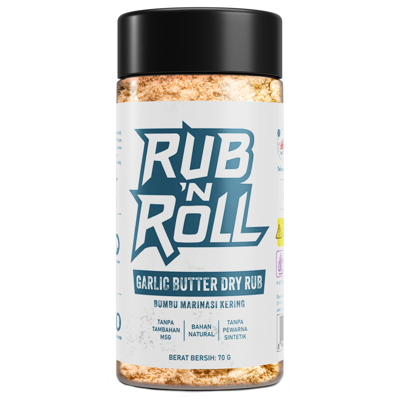 Rub N Roll menghadirkan Bumbu Garlic Butter Untuk Marinasi dengan rasa gurih mentega dan bawang putih yang harum. Mudah dipadukan dengan berbagai jenis bahan masakan lainnya seperti ayam, daging, seafood, maupun sayuran. Sehingga anda bisa menghadirkan hidangan khas Garlic Butter. di dapur anda dengan praktis tanpa tambahan bumbu lainnya. Bumbu ini mudah diaplikasikan dalam berbagai teknik memasak, mulai dari marinasi, panggang, tumis, hingga taburan akhir.