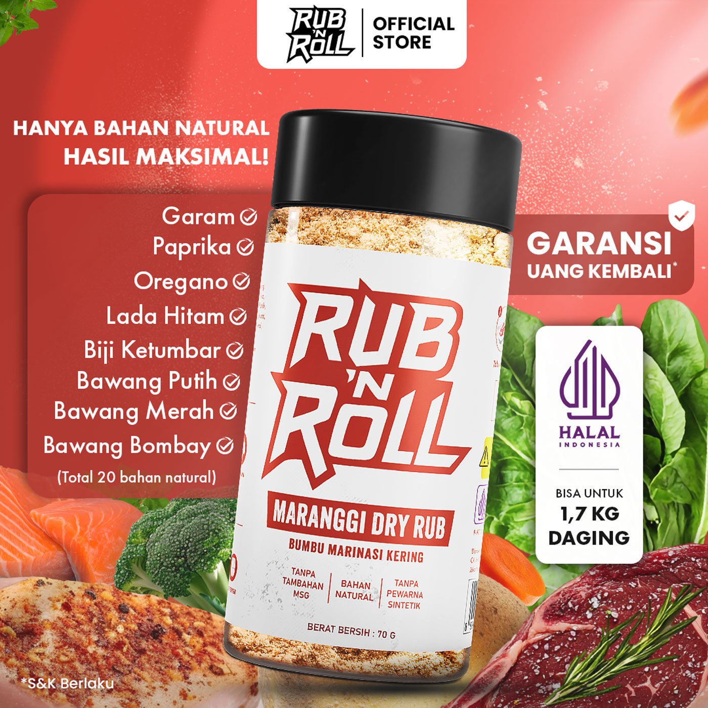 Bumbu Maranggi Untuk Marinasi Rub N Roll adalah Dry Rub Premium yang terbuat dari bahan natural, tanpa tambahan MSG, pengawet, dan pewarna buatan. Upgrade rasa masakanmu jadi lebih nendang dan smoky hanya dengan satu bumbu.