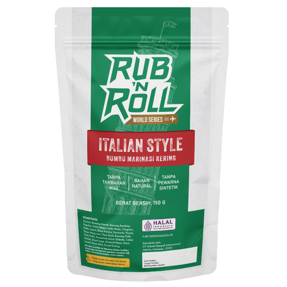 Bumbu Marinasi Ala Italia Rub N Roll adalah Dry Rub Premium yang terbuat dari bahan natural, tanpa tambahan MSG, pengawet, dan pewarna buatan. Upgrade rasa masakanmu jadi lebih nendang dan smoky hanya dengan satu bumbu.