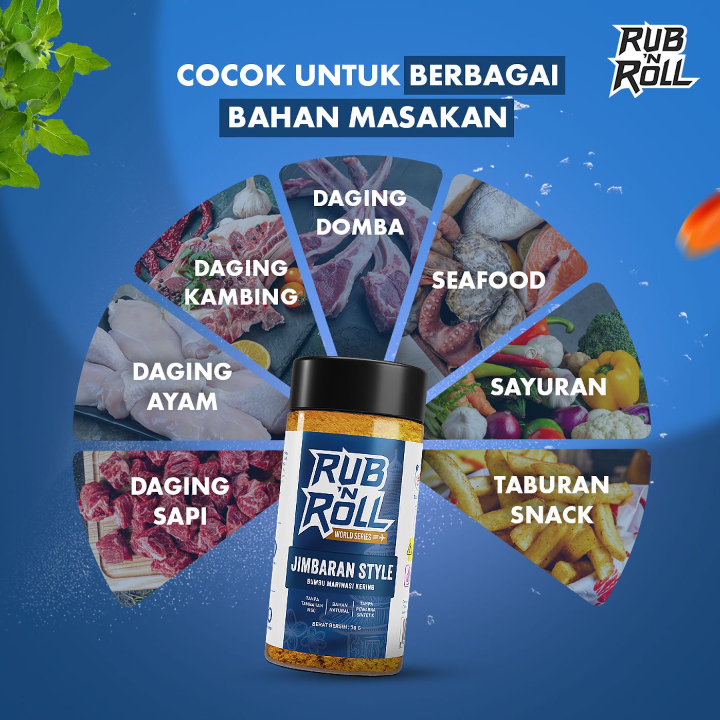 Bumbu Marinasi Ala Jimbaran Rub N Roll adalah Dry Rub Premium yang terbuat dari bahan natural, tanpa tambahan MSG, pengawet, dan pewarna buatan. Upgrade rasa masakanmu jadi lebih nendang dan smoky hanya dengan satu bumbu.