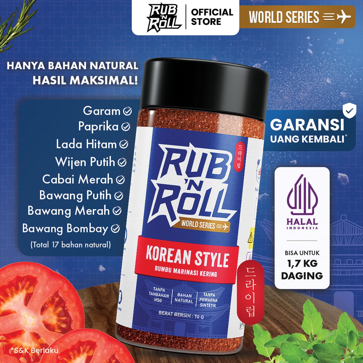 ✔ Komposisi Bumbu Marinasi Ala Korea Rub N Roll: Garam, Cabai Merah, Bawang Merah, Bawang Bombay, Lada Hitam, Bawang Putih, Paprika, Gula Kelapa, Kaldu Ayam, Wijen Putih, Gula Putih, Oregano, Konsentrat Jamur Shiitake, Jahe Putih, Daun Parsley, Mustard Hitam, Kunyit Kuning