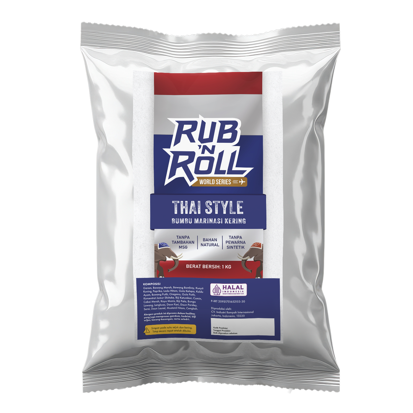 ✔ Komposisi Bumbu Marinasi Ala Thailand Rub N Roll: Garam, Bawang Merah, Bawang Bombay, Kunyit Kuning, Paprika, Lada Hitam, Gula Kelapa, Kaldu Ayam, Bawang Putih, Oregano, Gula Putih, Konsentrat Jamur Shiitake, Biji Ketumbar, Cumin, Cabai Merah, Kayu Manis, Biji Pala, Bunga Lawang, Lengkuas, Daun Kari, Daun Parsley, Serai, Daun Laurel, Mustard Hitam, Cengkeh