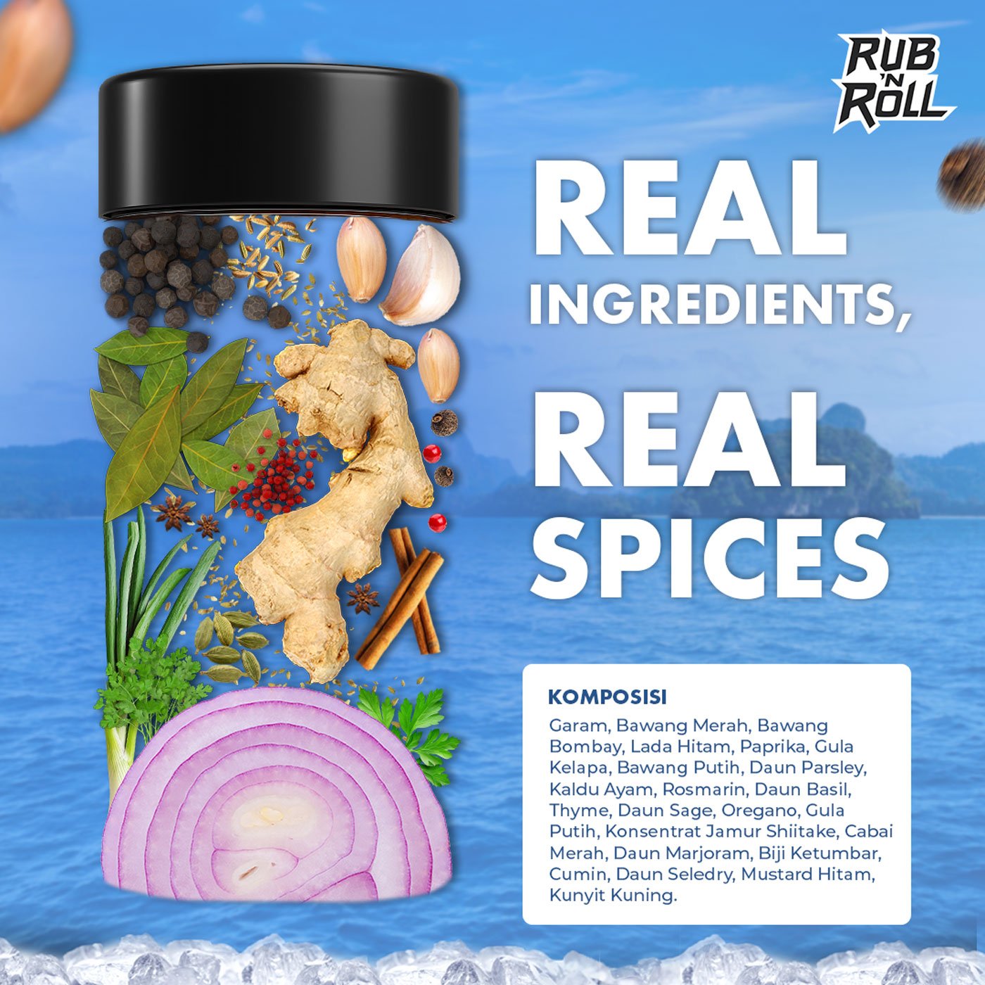 Bumbu Marinasi Elemen Air untuk Seafood Rub N Roll adalah Dry Rub Premium yang terbuat dari bahan natural, tanpa tambahan MSG, pengawet, dan pewarna buatan. Upgrade rasa masakanmu jadi lebih nendang dan smoky hanya dengan satu bumbu.
