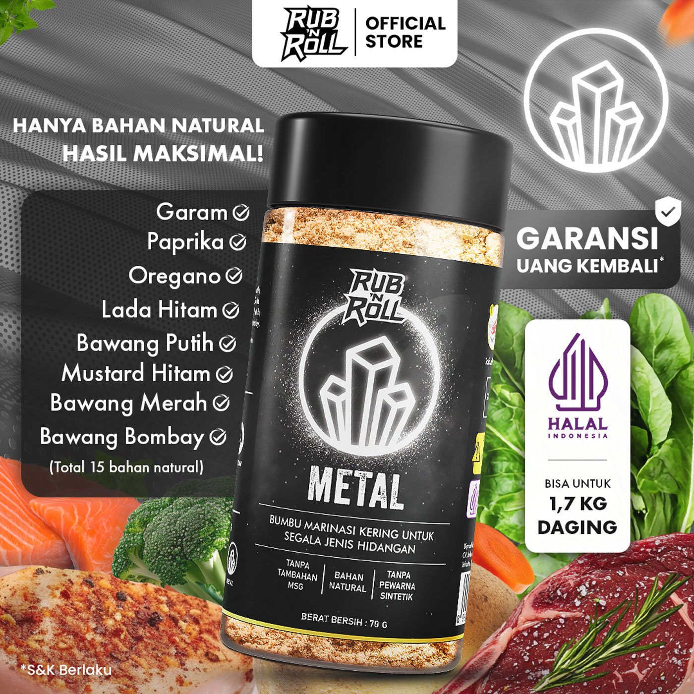 Bumbu Marinasi Elemen Metal untuk Segala Jenis Masakan Rub N Roll adalah Dry Rub Premium yang terbuat dari bahan natural, tanpa tambahan MSG, pengawet, dan pewarna buatan. Upgrade rasa masakanmu jadi lebih nendang dan smoky hanya dengan satu bumbu.