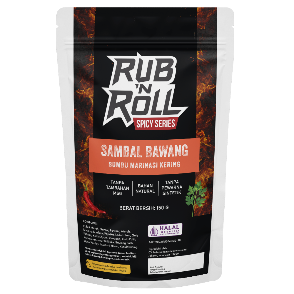 Bumbu Sambal Bawang Rub N Roll adalah Dry Rub Premium yang terbuat dari bahan natural, tanpa tambahan MSG, pengawet, dan pewarna buatan. Upgrade rasa masakanmu jadi lebih nendang dan smoky hanya dengan satu bumbu.