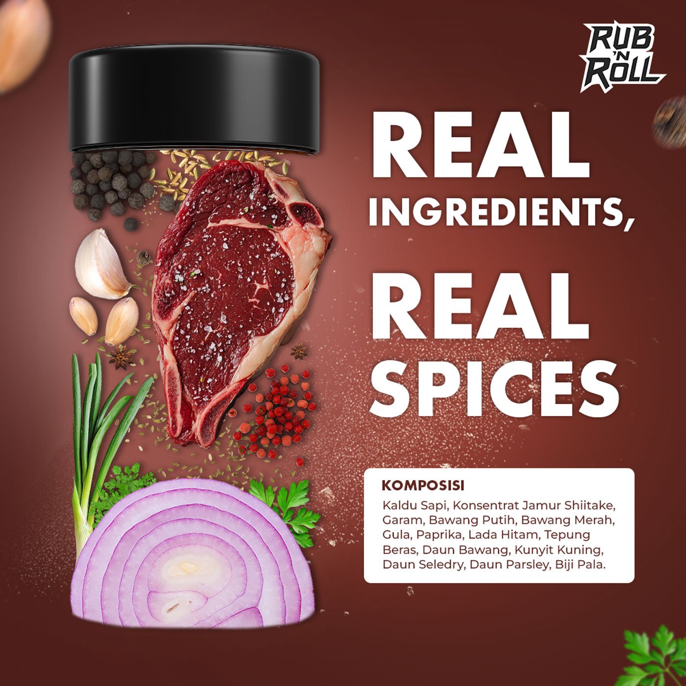 Kaldu Sapi Bubuk Rub N Roll adalah Dry Rub Premium yang terbuat dari bahan natural, tanpa tambahan MSG, pengawet, dan pewarna buatan. Upgrade rasa masakanmu jadi lebih nendang dan smoky hanya dengan satu bumbu.